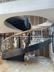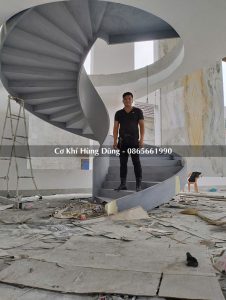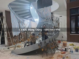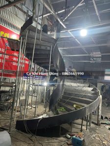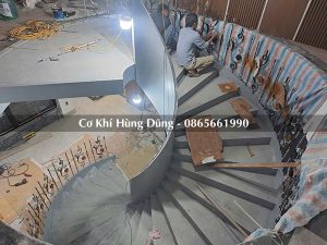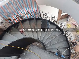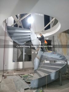 Gia công khung xương cầu thang xoắn tại xưởng cơ khí Hùng Dũng