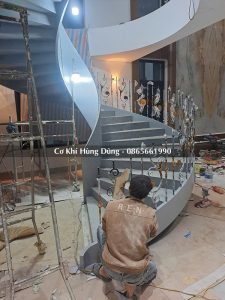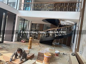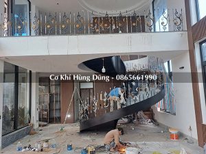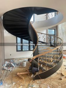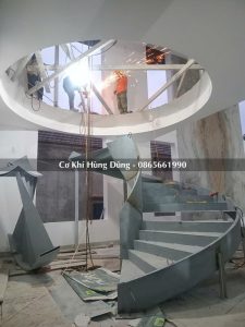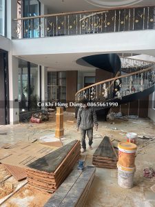 Quy trình lắp đặt khung xương sắt cầu thang xoắn ốc tại công trình