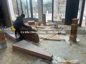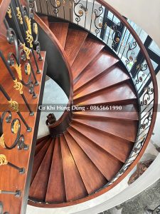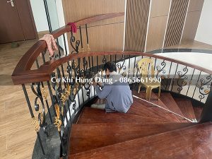 Lắp đặt mặt bậc gỗ, tay vịn gỗ cầu thang xoắn